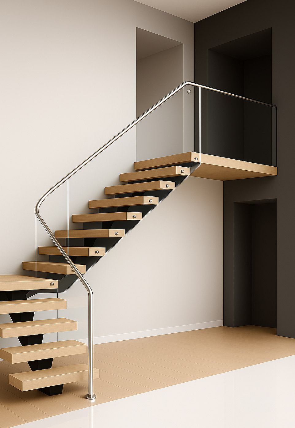 Floating stairs are the epitome of modern design, combining beauty, innovation, and functionality. Each project involves meticulous planning and engineering to ensure structural integrity while achieving the sleek, “floating” aesthetic. Our team carefully selects premium materials, including durable metals and elegant finishes, to create a staircase that appears weightless yet is built to last. From custom stringers and concealed supports to seamless connections with glass railings or minimalist handrails, every detail is designed to complement the unique style of your space. Whether you’re looking to enhance a residential interior or add sophistication to a commercial property, our floating stairs are a stunning architectural feature that transforms any environment.